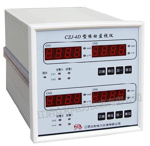 系統特點: CZJ-4D 型振動監視儀是一個四通道儀表;可同時接收四個磁電式速度傳感器信號,用于連續監視和測量各種旋轉機械的軸承絕對振動峰- 峰值或振動速度的均方根值(烈度)。 主要功能特點: ◎ 同時輸入四路SZ 系列磁電式速度傳感器信號; ◎ 每通道獨立的3½ 位數碼管顯示; ◎ 頻響誤差:40 ~ 60Hz ≤ ±2%;30 ~ 200Hz ≤ ±4%;10 ~ 300Hz ≤ ±10%
